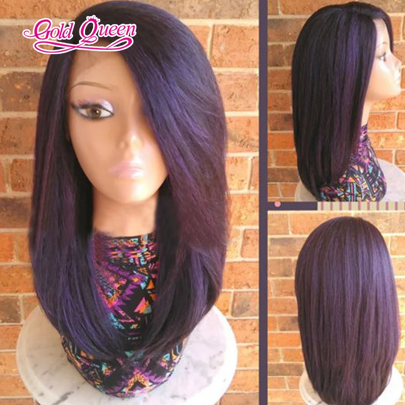 7a Ungu Wig Glueless Penuh Lace Wig Side Part 18 Inch Depan Renda