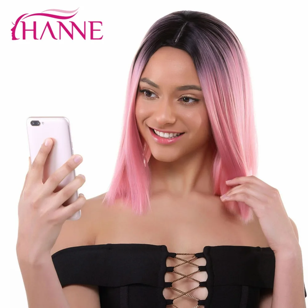 Hanne Pink Bob Wig Potongan Rambut Pendek Sebahu Serat Suhu Tinggi