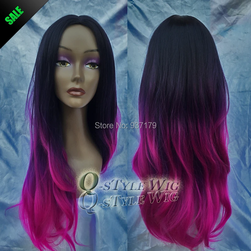 Grosir Fashion Panjang Mesin Membuat Wig Rambut Hitam Ungu Warna
