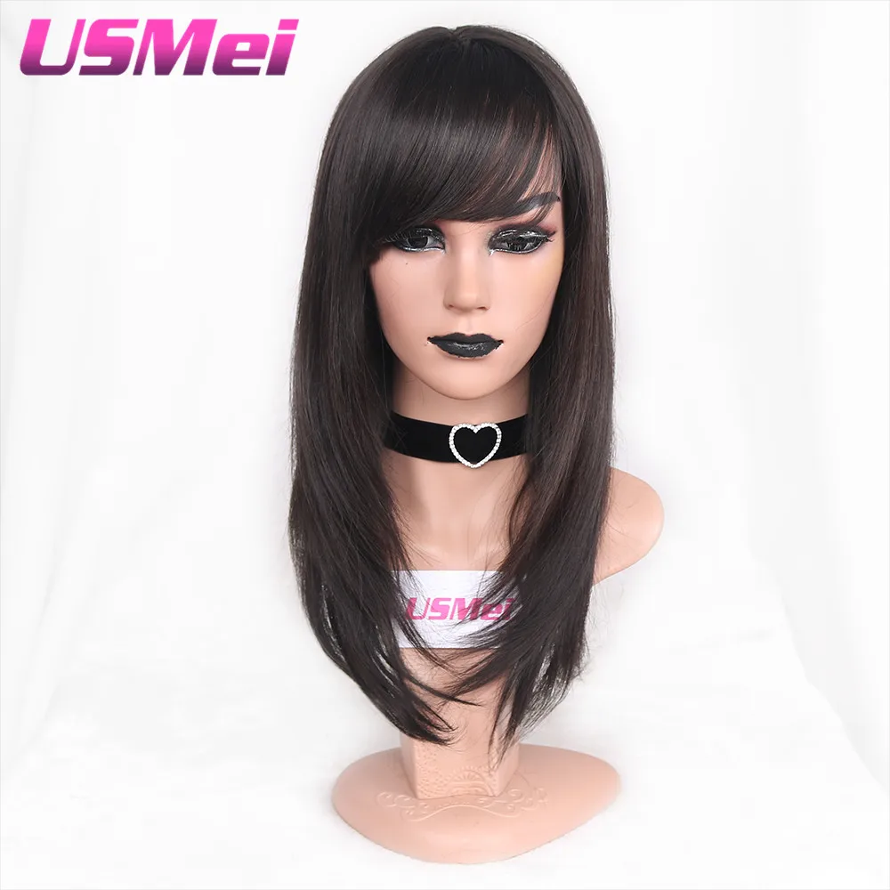 Usmei Panjang Lurus Brown Wig Dengan Sisi Poni Gaya Rambut Wanita