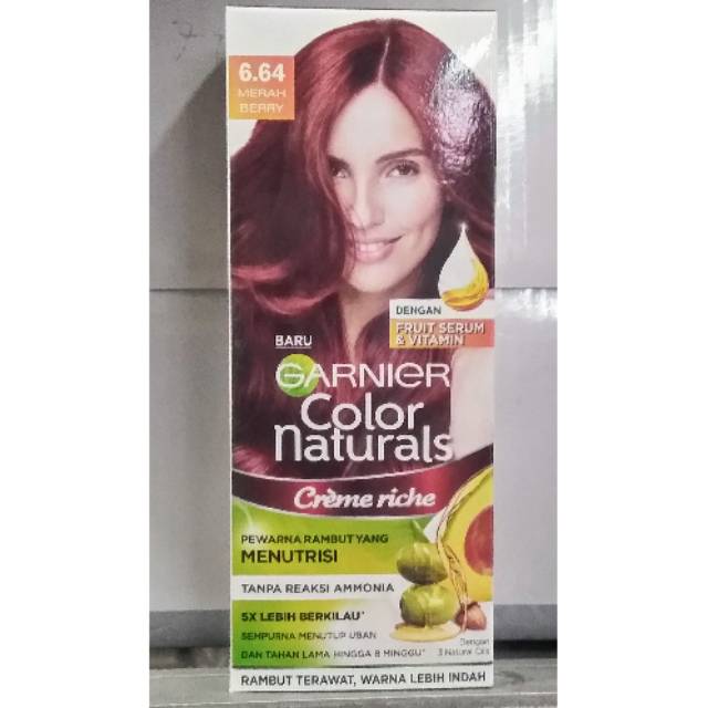 Beberapa varian warna cat rambut dari garnier pewarna rambut. Creme riche 316 merah burgundy. Garnier color naturals dapat diaplikasikan untuk seluruh rambut atau untuk menyempurnakan warna cat rambut sebelumnya di bagian yang diperlukan.