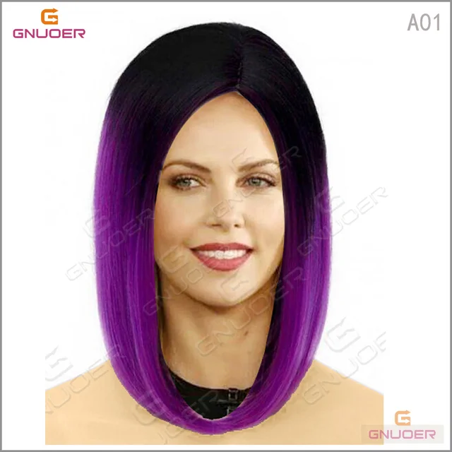 Gaya Rambut Ombre Hitam Ungu Pendek Lurus Mendengar Serat Tahan