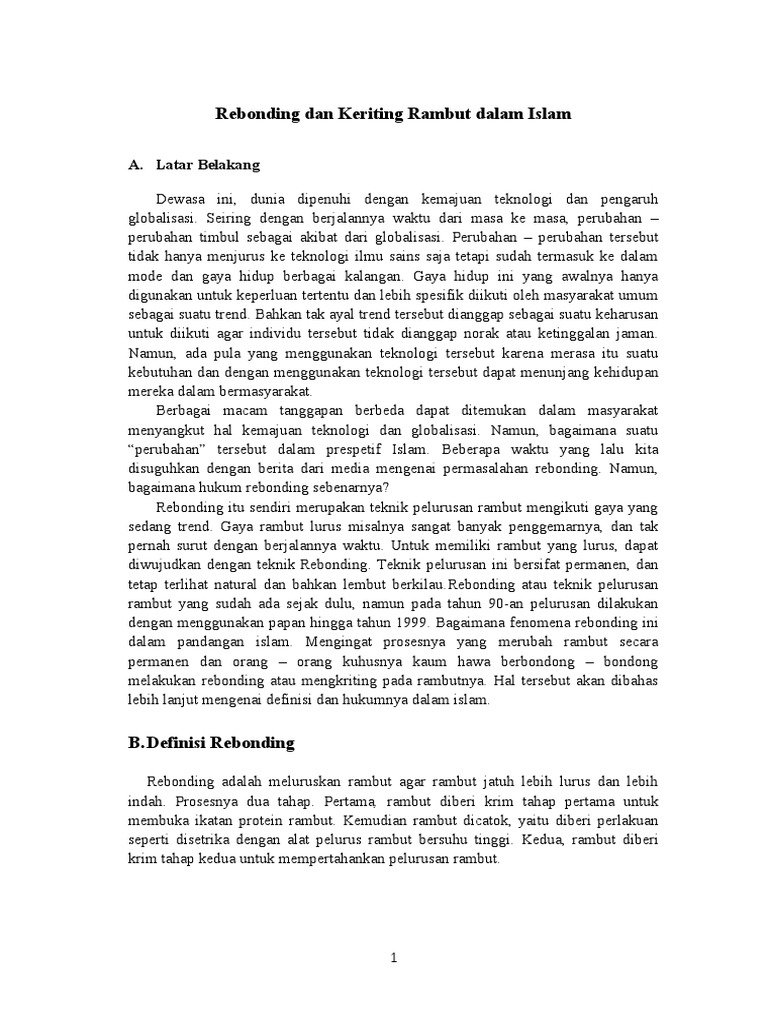 Sebaliknya apabila tujuan dan dan dampaknya positif maka di perbolehkan seperti untuk menyenangkan suami. Di dalam proses keriting atau perm permanent waves rambut diberikan senyawa pereduksi yang membuka beberapa ikatan s s. Dalam perspektif hukum islam rebonding rambut hukumnya mubah dalam arti dibolehkan.